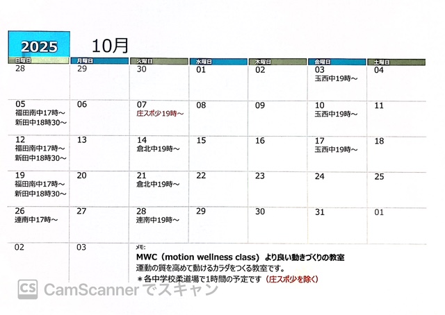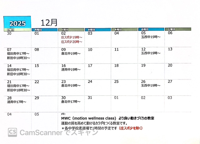*木曜日の児島中教室は希望者0の為休止中です。ご希望の方はご連絡ください。